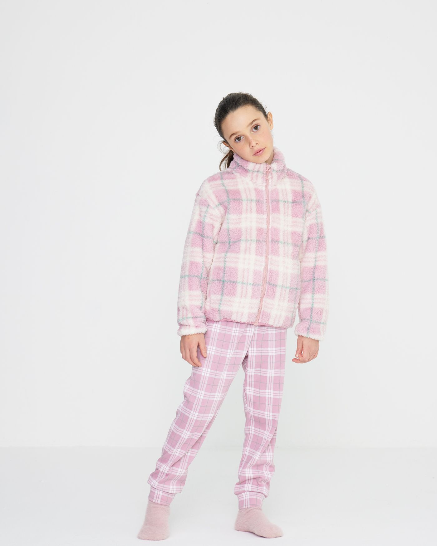 Giacca Bambina in morbido e confortevole coral, motivo a quadri