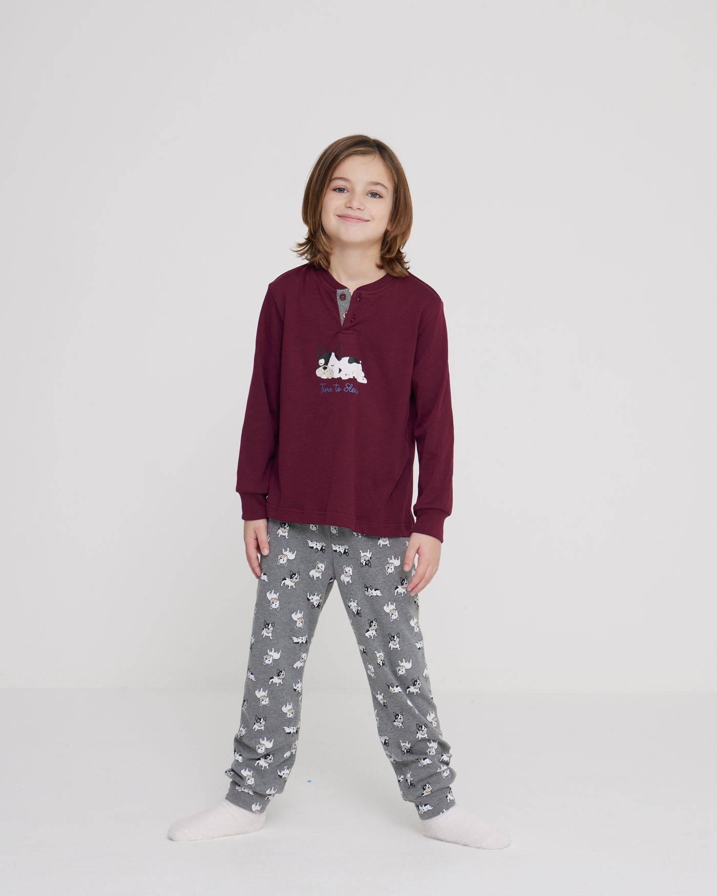 Paul Bordeaux Pigiama Bambino in caldo cotone con collo a due bottoni