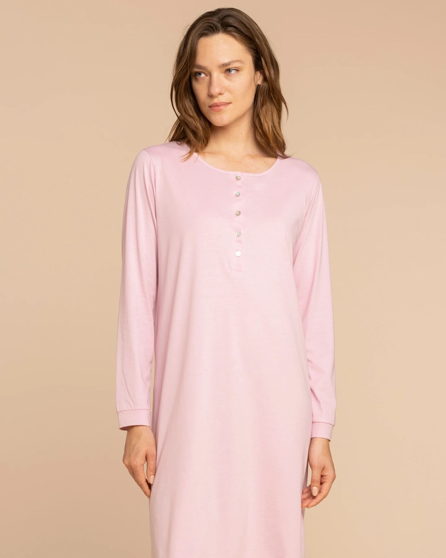 Camicia da notte con abbottonatura serafino profondo e dettagli in pizzo. Ideale anche per l’allattamento
