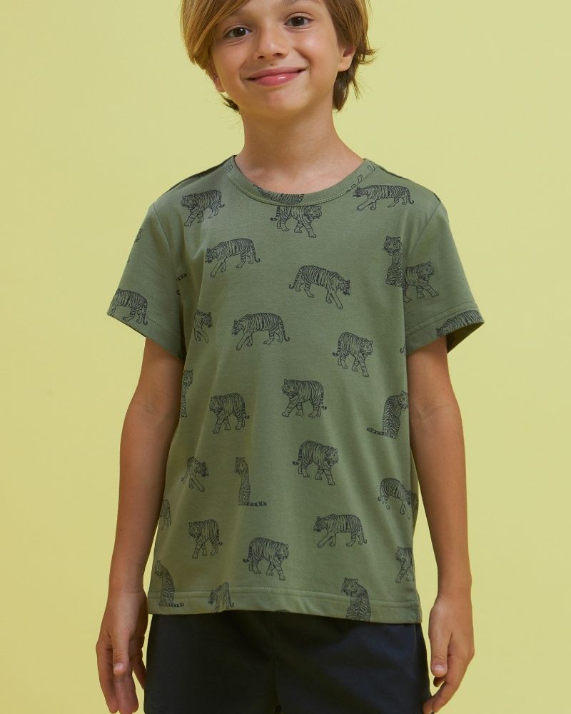 Pigiama Bambino Manica Corta con stampa tigri e Pantalone Corto Tinta Unita