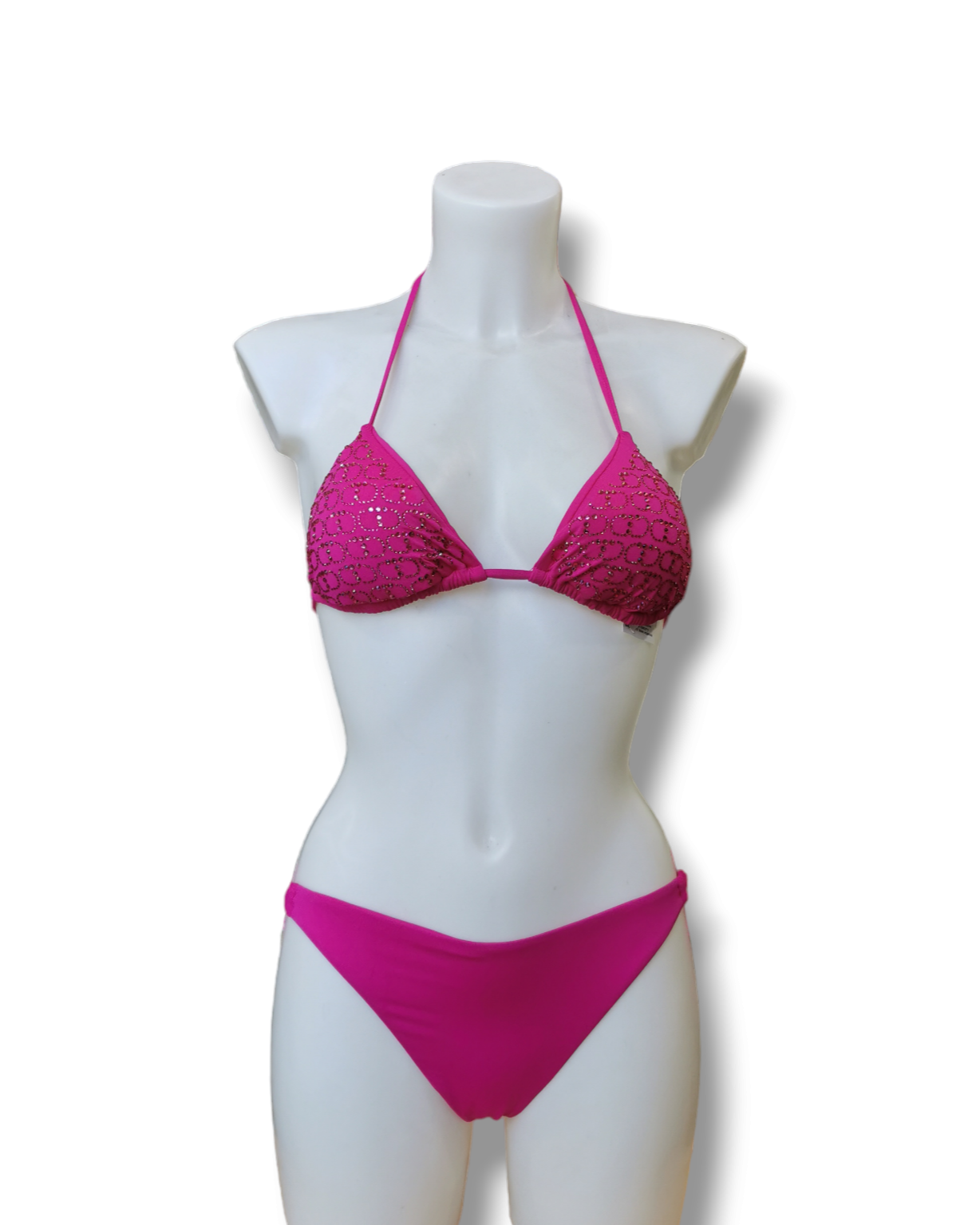 Triangolo da bagno a tendina imbottito con coppe estraibili, applicazione di strass con grafica logo Oval T.