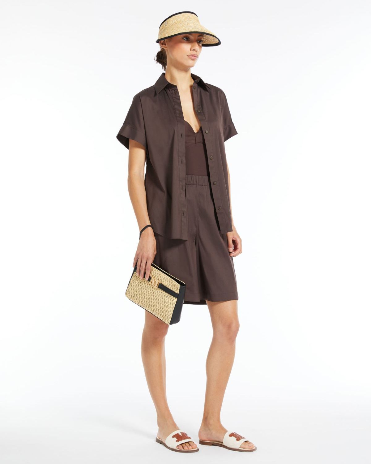 Camicia a maniche corte dalla linea leggermente sagomata realizzata in leggero popeline di misto cotone stretch.